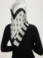 Schaless Aurora Gri Geometrik Desenli Janjanlı Eşarp Resmi