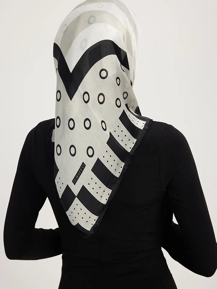 Schaless Aurora Gri Geometrik Desenli Janjanlı Eşarp