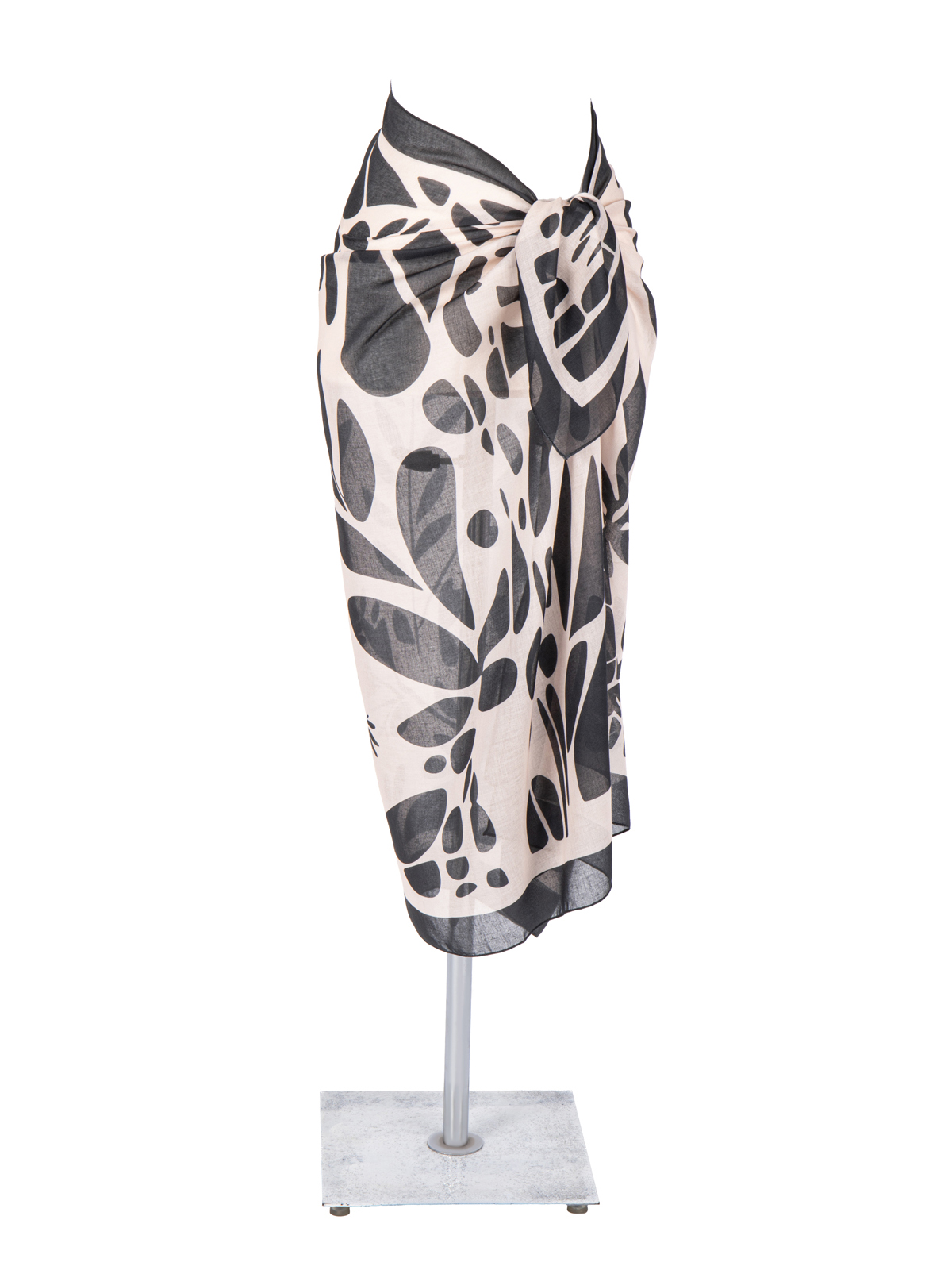 Schaless Bej Siyah Botanik Desenli Pareo 100×140 cm