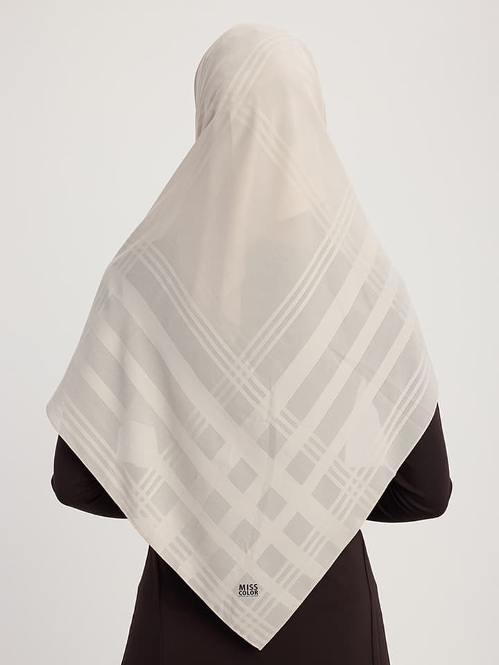 Jakarlı Ekose Şifon Eşarp 120x120cm – Taş