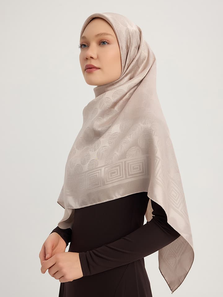 Kombinin ne kadar özenli olursa olsun, eşarbın sıradan olduğunda tüm şıklık boşa gidiyor. Işıkta cansız kalan kumaş, seni olduğundan daha sade gösteriyor. Jakarlı parlak saten dokusu ve zamansız bej rengiyle bu eşarp, kombinin merkezine zarafeti yerleştirir.