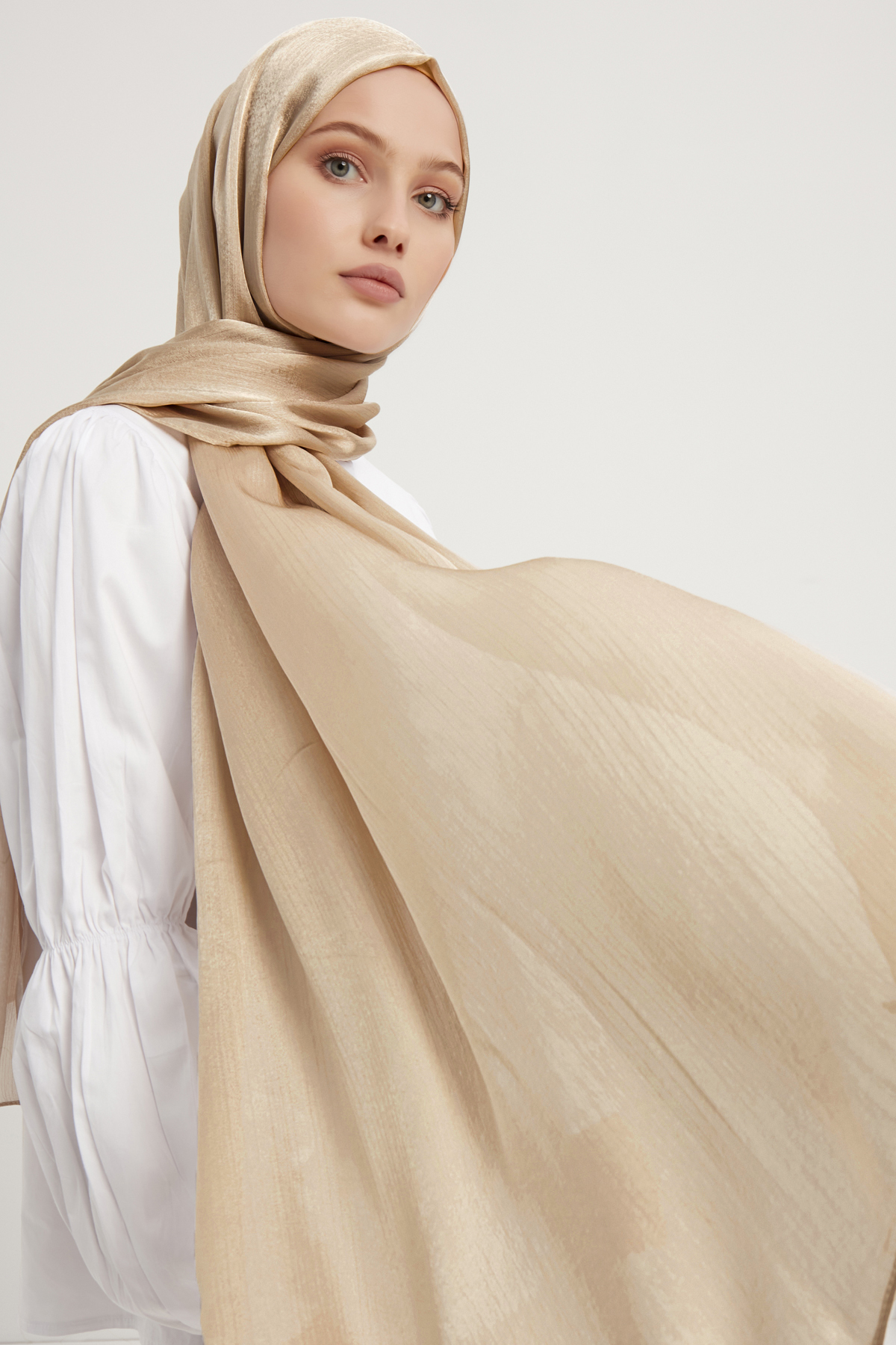 Schaless Janjanlı Bej Krinkıl Şal