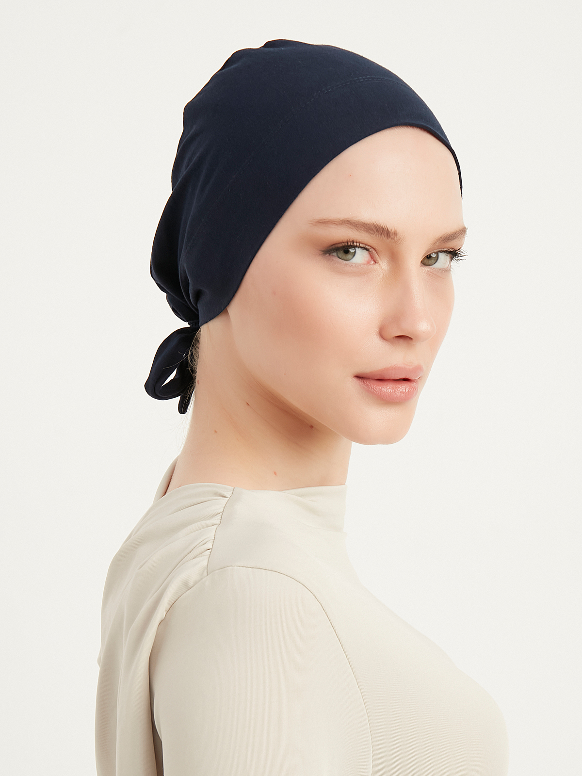 Schaless Kaymaz Bağlamalı Pamuk Lacivert Tesettür Bone