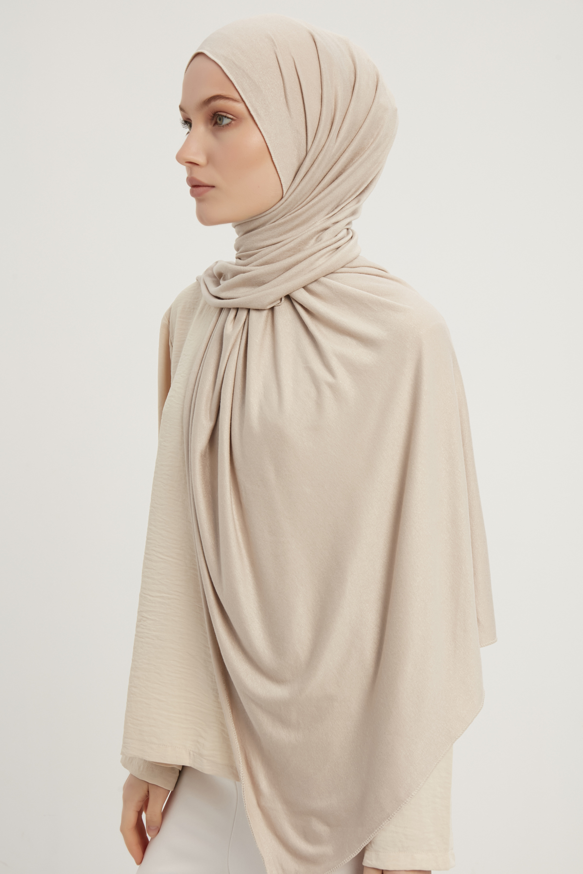 Schaless Likralı Taş Rengi Penye Şal
