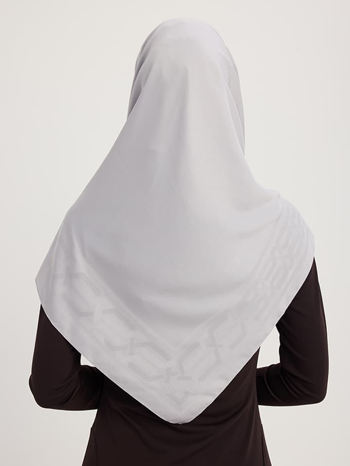 Mat Saten Pano Jakarlı Eşarp 100x100cm – Gümüş