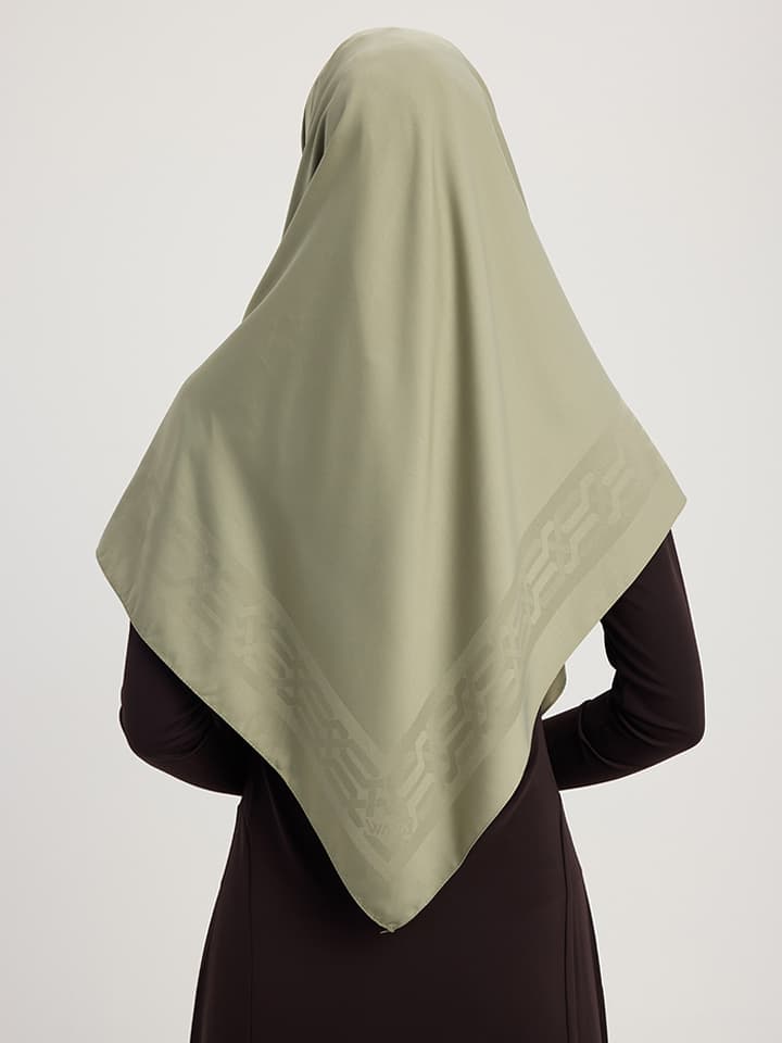 Mat Saten Pano Jakarlı Eşarp 110x110cm – Haki