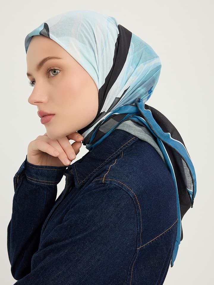 Renklerin Lalesi Mavi Efilia Desenli Şal 70×190 cm