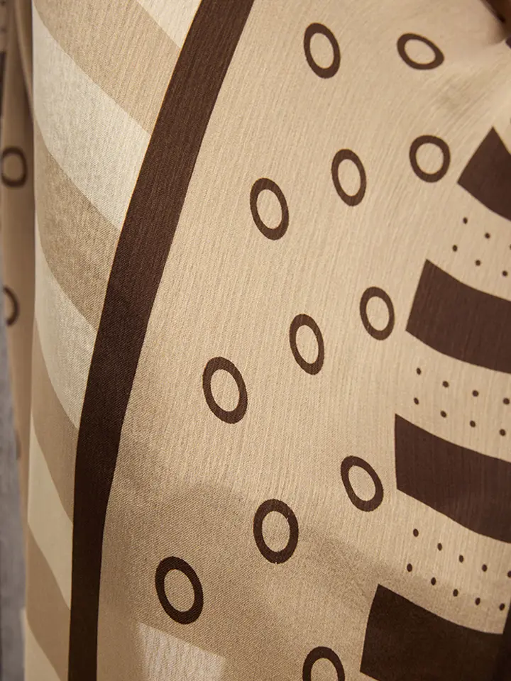 Schaless Aurora Açık Kahverengi Desenli Janjanlı Şal