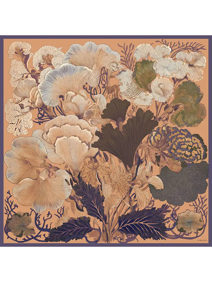 Schaless Efilia Açık Kahve Botanik Desenli Janjanlı Eşarp