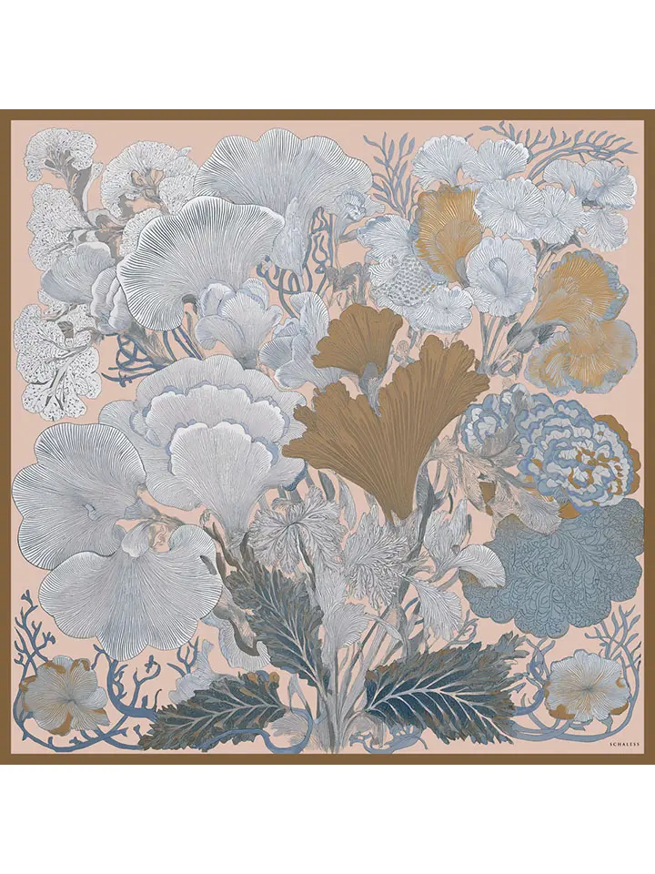 Schaless Efilia Bej Botanik Desenli Janjanlı Eşarp