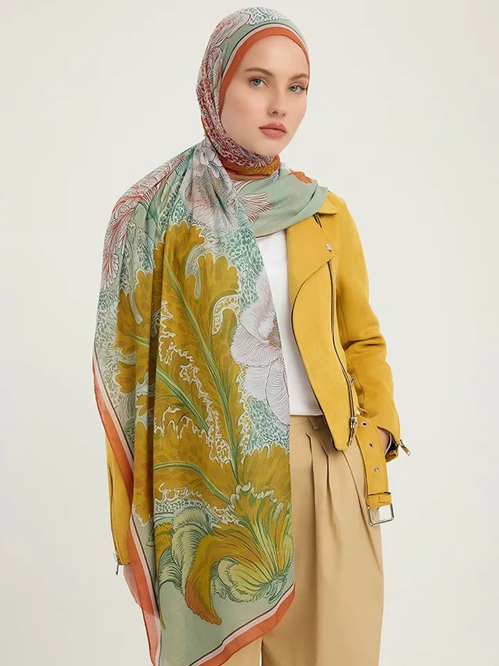 Schaless Efilia Turuncu Botanik Desenli Şal