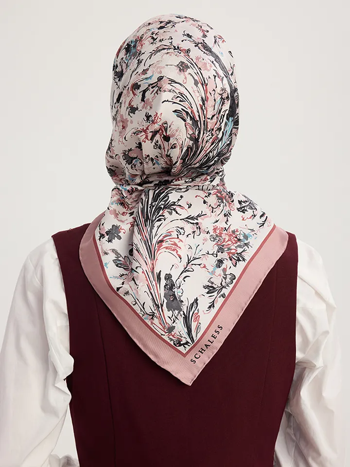 Schaless Serica Pudra Barok Floral Desenli Twill İpek Eşarp