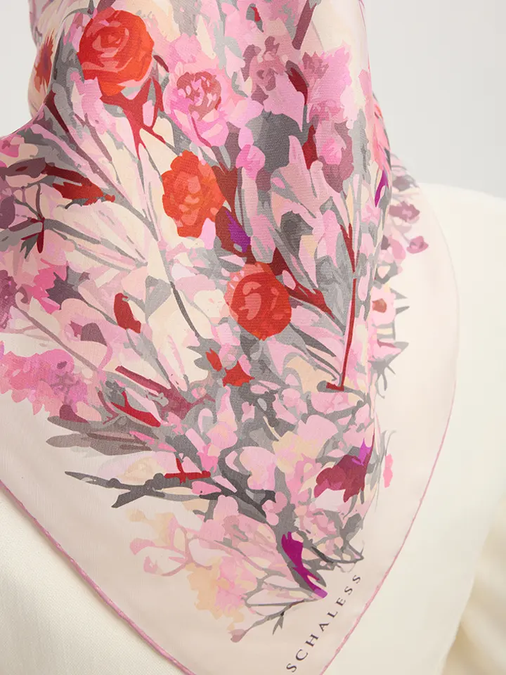 Schaless Serica Pudra Çiçek Desenli Twill İpek Eşarp 8695101080505