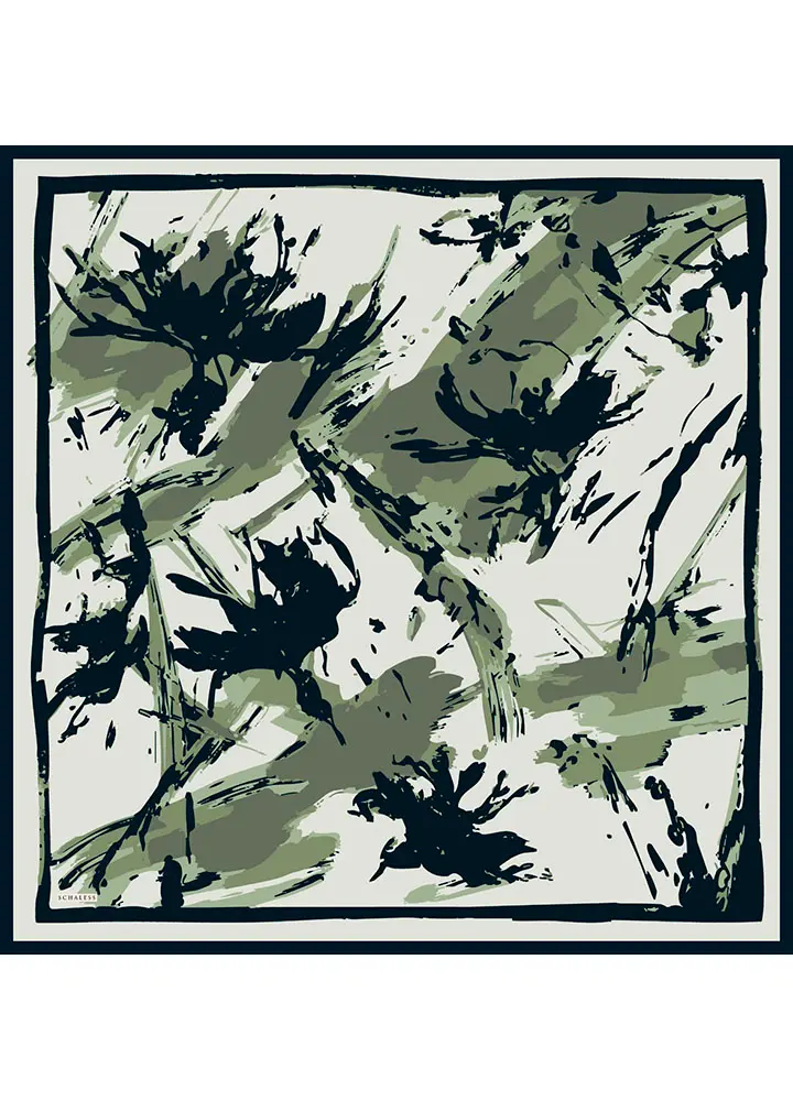 Schaless Vierra Haki Soyut Çiçek Desenli Viskon Eşarp