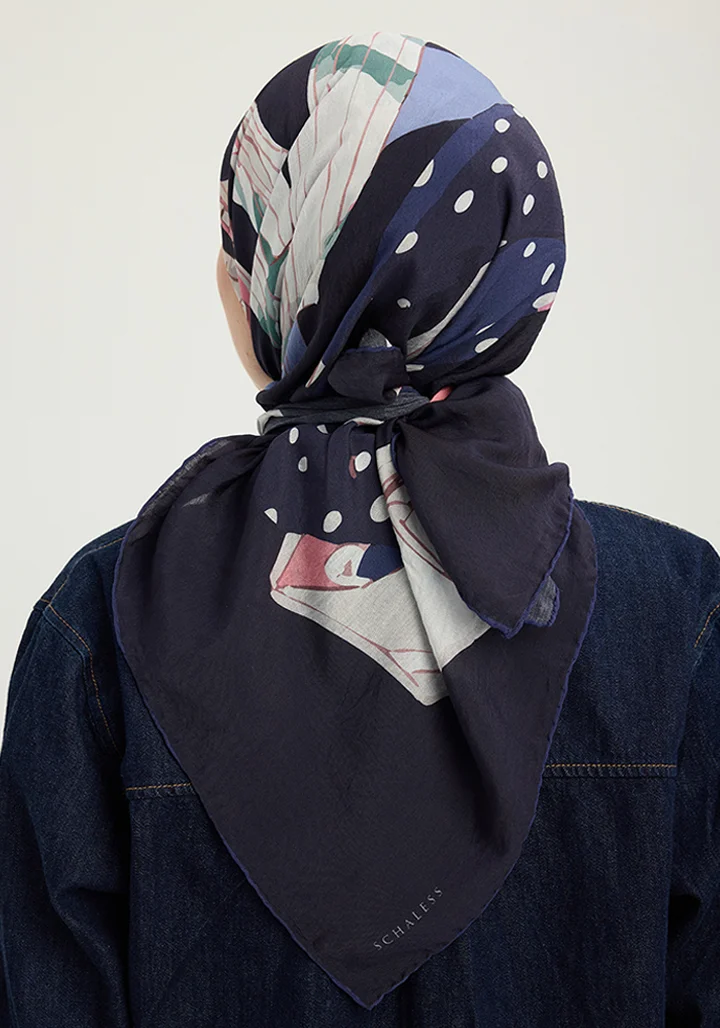 Schaless Vierra Lacivert Soyut Kolaj Desenli Viskon Eşarp