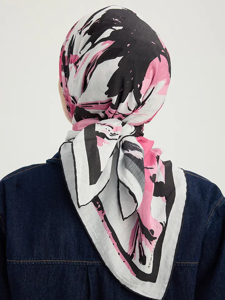 Schaless Vierra Pembe Soyut Çiçek Desenli Viskon Eşarp Resmi