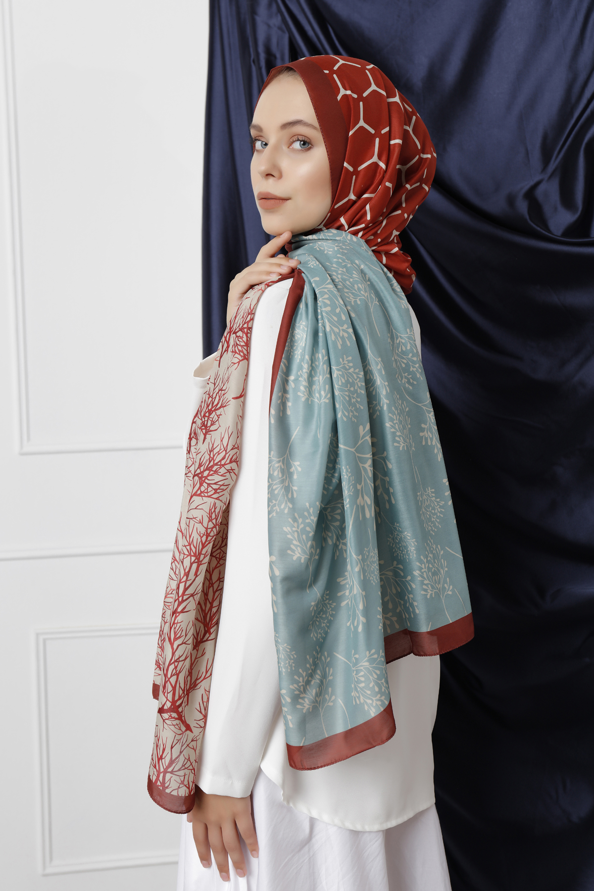 Schaless Kiremit Dal Desenli Şal